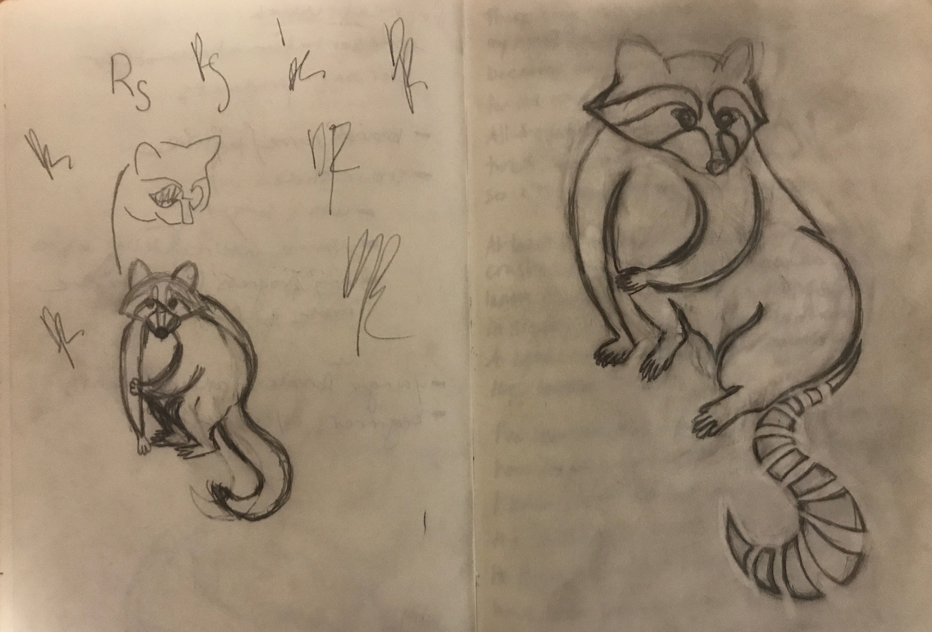 I knew I wanted my logo to incorporate a raccoon. My first variation tried to use the raccoon's whole body, but wasn't clean enough and ended up being too complicated to use at small sizes.